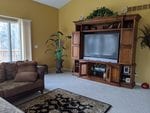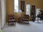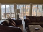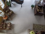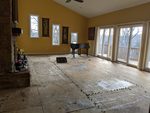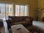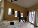 The owners of this Mid-Century Modern home contacted Renowned Renovation for a complimentary design consultation. They told us they wanted new flooring and advice on refreshing their living room so that it was warm, with a simplistic design. The home sits next to a wooded lot, the living room was very open with an abundance of natural lighting. We recommended that they replace the white Berber carpet with an Anderson-Tuftex Colonial Manor Smokehouse Hickory Hand Scraped Hardwood floor and change the wall color from Anjou Pear to Sherman Williams' Urban Putty.