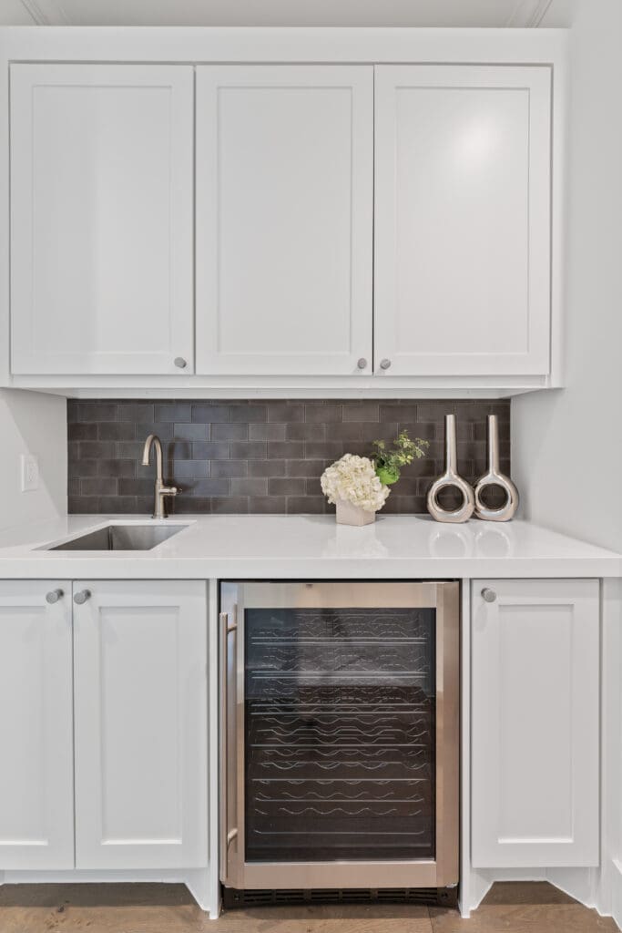 Bask in an interior defined by luxurious white oak wood flooring, solid core doors adorned with Baldwin hardware, and custom cabinetry that adds a personal touch to the sophisticated layout. Indulge in the convenience of a state-of-the-art wine cellar, accommodating over 300 bottles and two stylish wet bars.