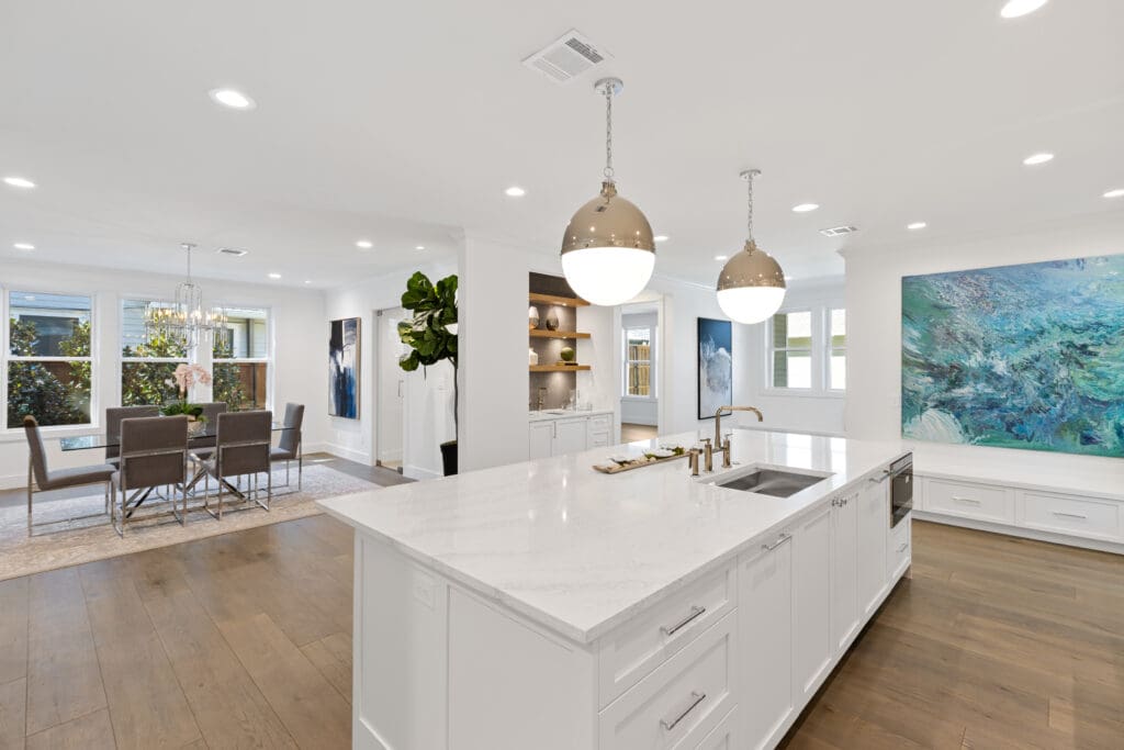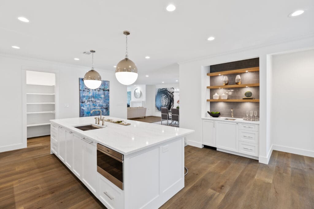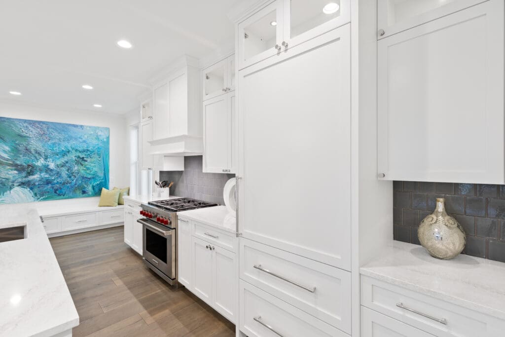 A culinary enthusiast's dream, featuring high-end Subzero, Wolf, and Cove appliances set against stunning Cambria Quartz countertops.