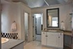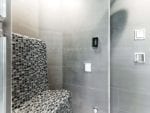 Due to limited space in the shower area Renowned Renovation built a platform above the shower to encapsulate the steam generator and thermostatic shower valve. This allowed the homeowner to get the maximum storage space in the bathroom.