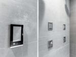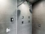 The Renowned Team installed a new shower/spa system with a frameless shower door, steam accessories, new floating vanity, wall hung commode, and tile (find more here).