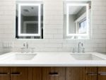 Renowned Renovation removed the existing vanities, sinks, jetted tub, separate shower, sheetrock, tile, and the toilet.