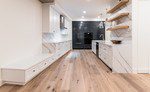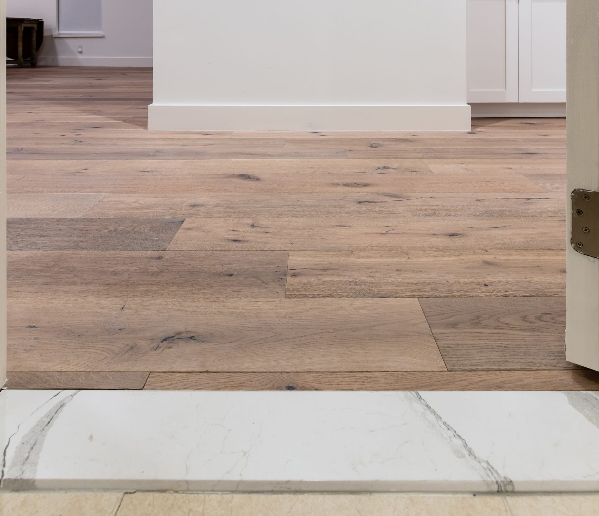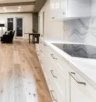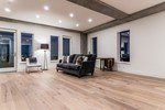 The floors are DuChâteau’s The Riverstone Collectionâ„¢, which is an evolution of hand-sculpted hardwood flooring that blends beautifully with interiors old and new. The natural distressing and raised knots give the floors a raw and organic contour that feels comforting beneath the feet. The DuChâteau®, The Riverstone Collectionâ„¢ effortlessly merges modern and rustic design to create a truly original and inspiring floor.