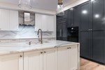 It was a pleasure working with and installing leading-edge products like Hunter Douglas Window Fashions, Cambria Surfaces, DuChateau Wood Flooring,Fixtures by WaterWorks, TruStile Doors, and Renowned Cabinetry