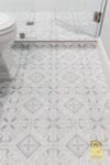 This porcelain 6" x 6" Emser Encaustic tile creates a beautiful medallion pattern when four tiles are placed together. The design was widely used in the 13th through the 16th century in monasteries and churches. We chose to use the tile on the shower as well as on the bathroom floor for continuity of style.