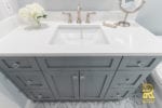 The Encaustic tile was the inspiration for Melissa's selection of the fixtures and accessories for this Ensuite bathroom. The StyleCraft bathroom vanity has a Cambria Countertop, a Toto Undermount Sink with Brizo Charlotte Faucets.