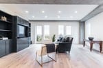 The floors are DuChâteau’s The Riverstone Collectionâ„¢, which is an evolution of hand-sculpted hardwood flooring that blends beautifully with interiors old and new. The natural distressing and raised knots give the floors a raw and organic contour that feels comforting beneath the feet. The DuChâteau®, The Riverstone Collectionâ„¢ effortlessly merges modern and rustic design to create a truly original and inspiring floor.
