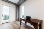 The owners’ selection of materials, fixtures, appliances, furniture-grade custom cabinets, and the remote-controlled hideaway Murphy bed reflected their desire for function, luxury, durability, and style.