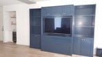 The owners chose to extend the functionality of their condo by adding Zoom-Room remote controlled murphy-bed to the entertainment center, allowing the living room to convert into a bedroom, when needed. ...need more copy