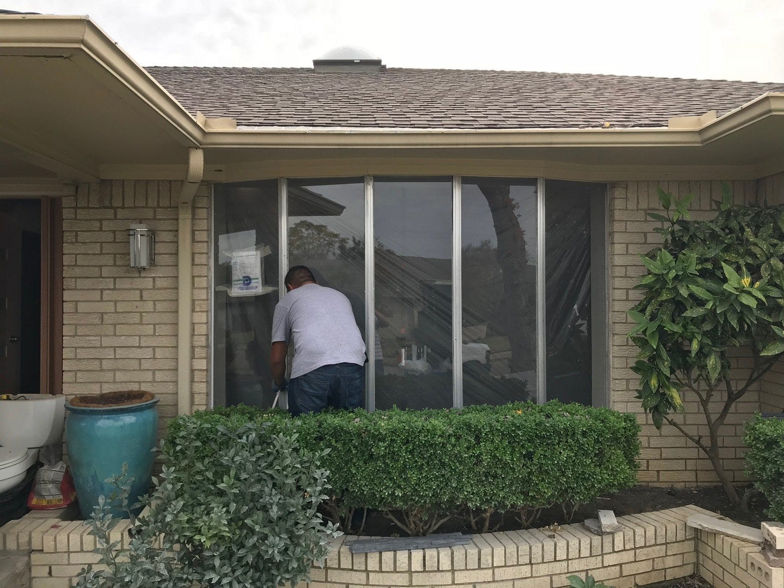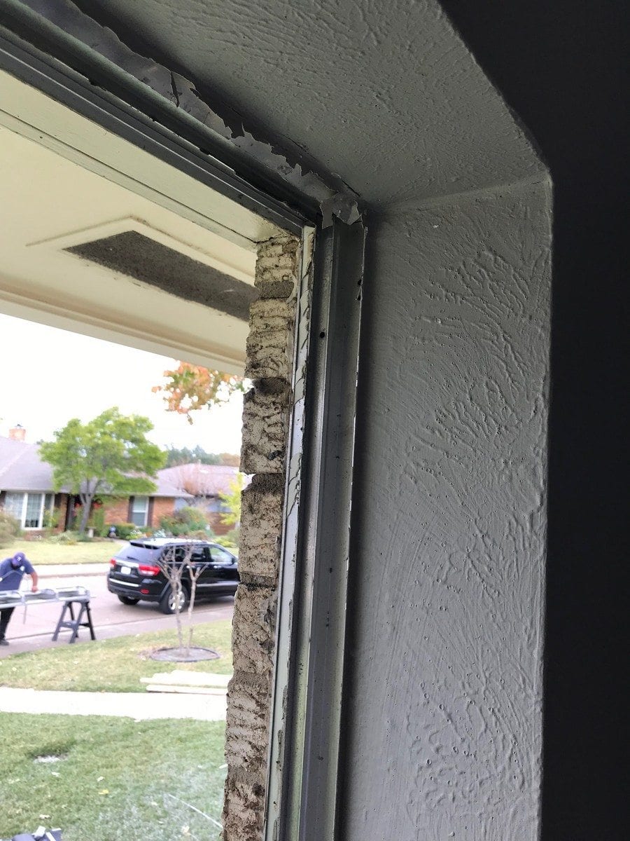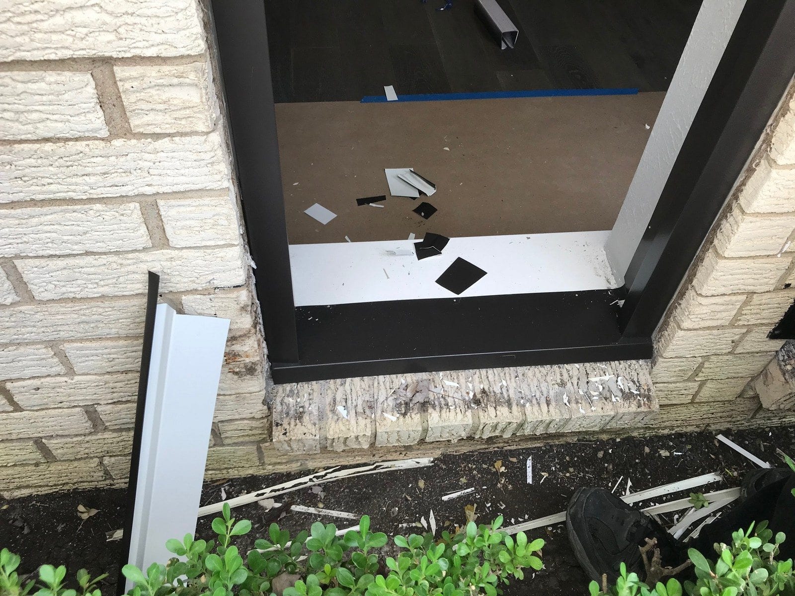 Step One: The existing glass is removed with suction cups and blazing. The window frames are cut down instead of prying out of the frame which compromises the building envelope. This antiquated methodology of ripping out the window frames or “collapsing the frame” caused internal leaks and damage behind the facade. As building envelope scientist aka forensic engineers began studying replacement windows and the damage and water intrusion issues related to them, a new design criteria was written and adopted by AAMA. The subsequent training from installers in this protocol is called the AAMA Installation Masters Window and Door Installer Certification. Any homeowner considering a window replacement should contract with a company that employs at least one person with this certification. Step 2: After the glass is removed to make space for the rockingham glass, the existing aluminum frame is cut down as close to the returns as possible.