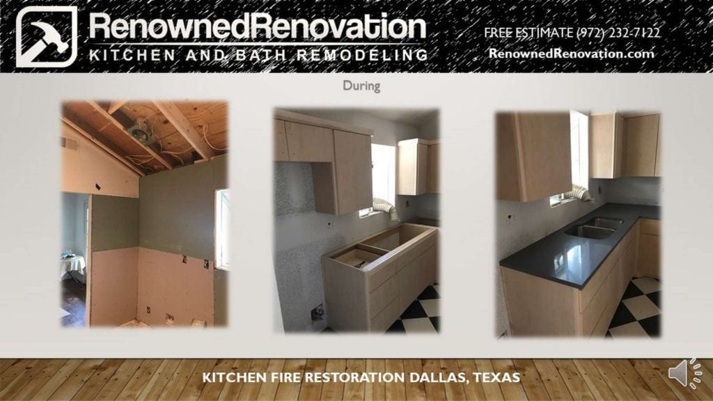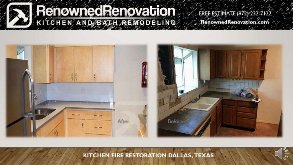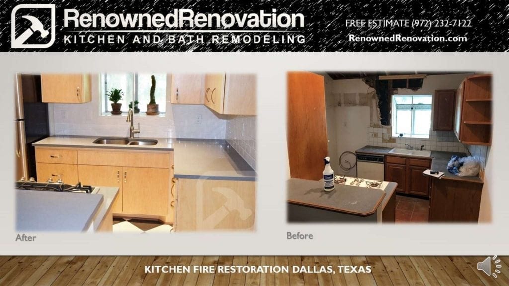 Before and After Kitchen Fire Restoration by Renowned Renovation.