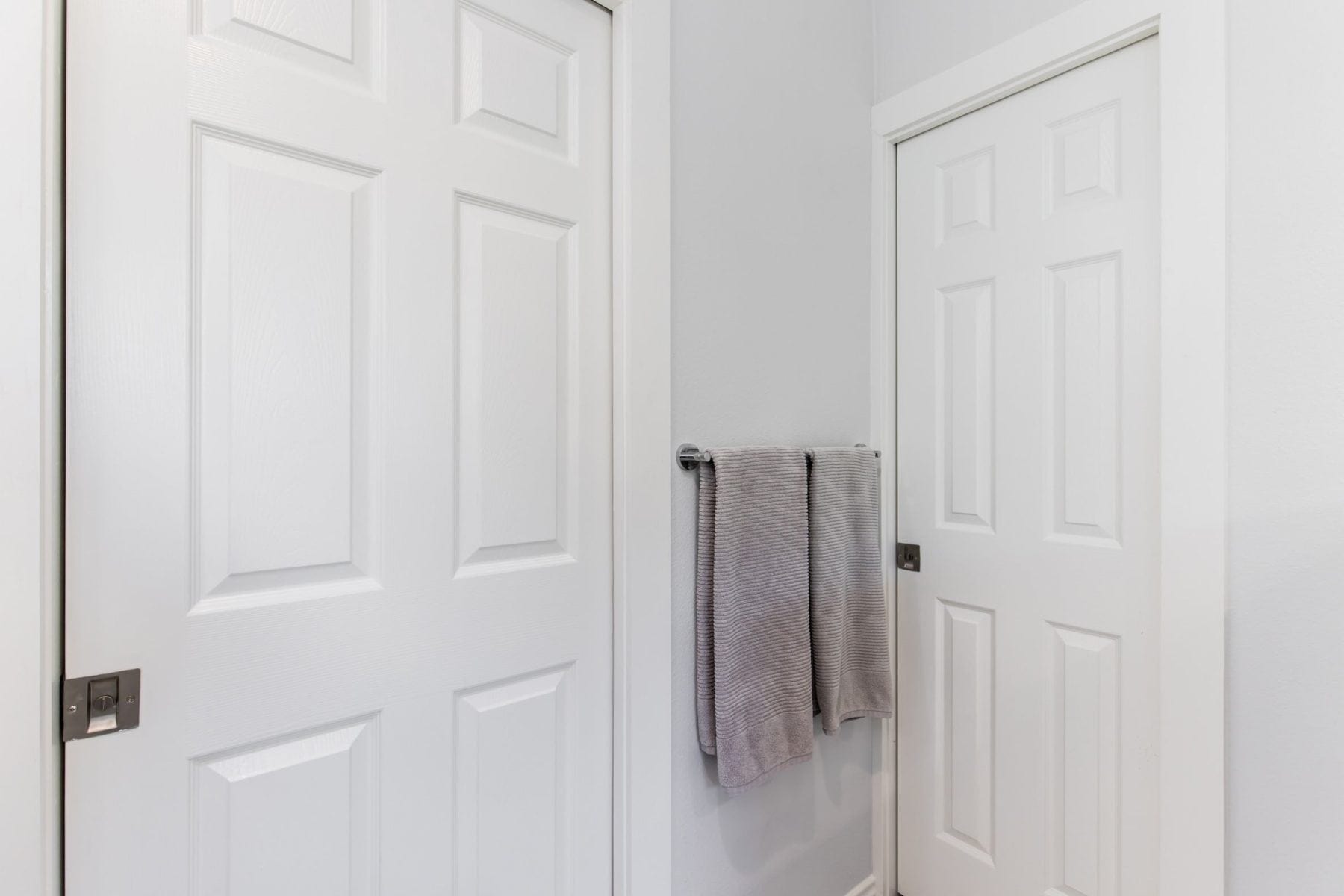 After demolition, we built 2 pocket doors, added a new concrete mud pan, bench and niche for the shower, retiled the bathroom floor and shower walls, installed a frameless shower enclosure, prefinished vanity with top and sinks from Kohler. We replaced the bathroom window, installed shower floor that was 2″ hex marble, Carrara White, The shower walls and bathroom floor were 4 x 16 classic white carrara. Fixtures were from Kohler with a white quartz countertop. The Bathroom vanity was from Renowned Cabinetry
