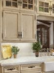 This type of cabinet works well in traditionally designed spaces, If you look closely, you can see the frame between the cabinet doors.