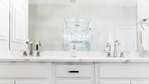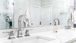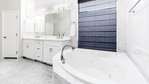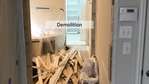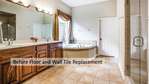 Renowned Renovation removed and hauled off existing countertops, flooring, baseboards, shower pan and tile, glass, and tile from tub deck. We then Installed shower tile, tub surround, and tub deck tile, countertop and painted the vanity.