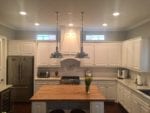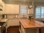 Renowned Renovation replaced the old counter-tops, sinks, lights, and backsplash. Prepped , primed, and painted cabinets. Fabricated and installed Butcher Block Counter for Island. Installed new finished oak hardwood floors to match existing.