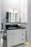 Melissa used screen sharing, Pinterest, Houzz and lots of phone calls was able to manage the project remotely. The results? A vintage-themed bathroom .